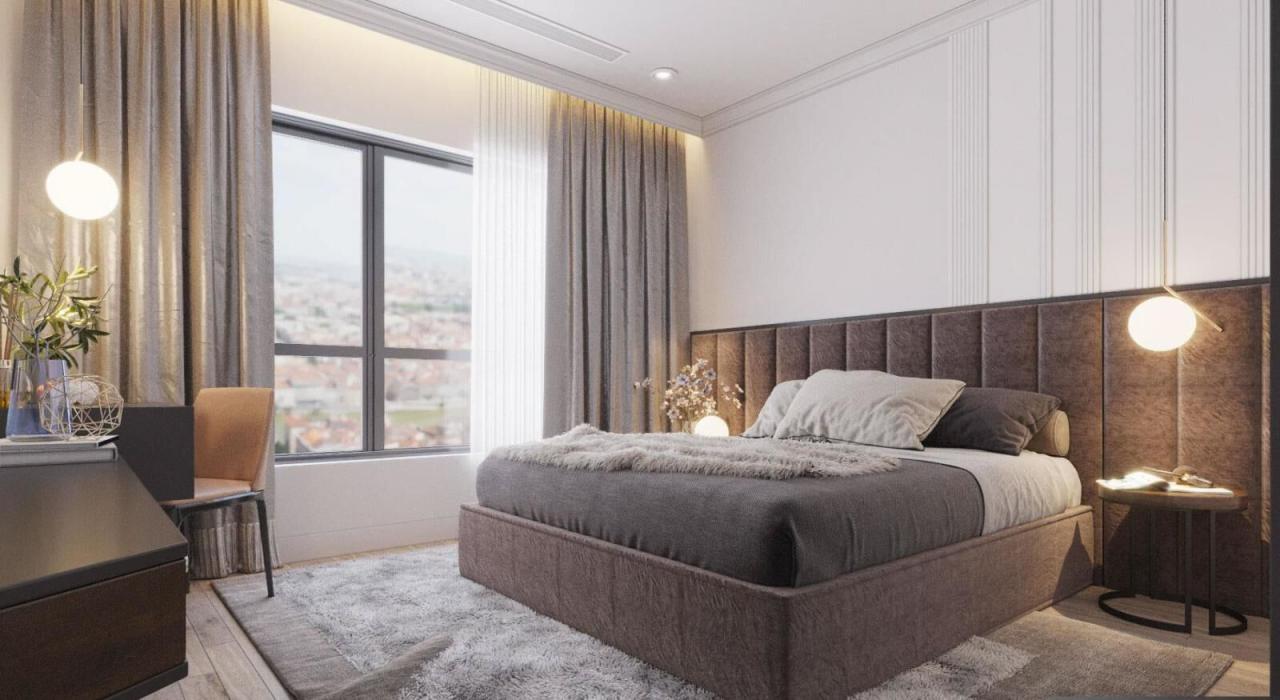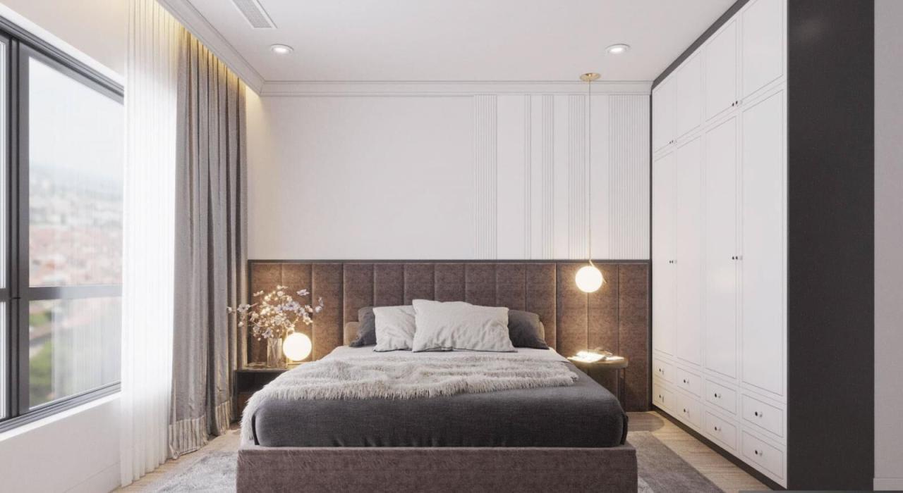 Theo mong muốn của gia chủ, kiến trúc sư thiết kế nội thất phòng ngủ master theo phong cách hiện đại, tối giản với bảng màu trung tính nhẹ nhàng.